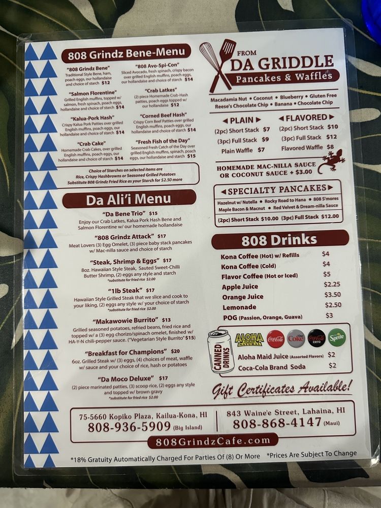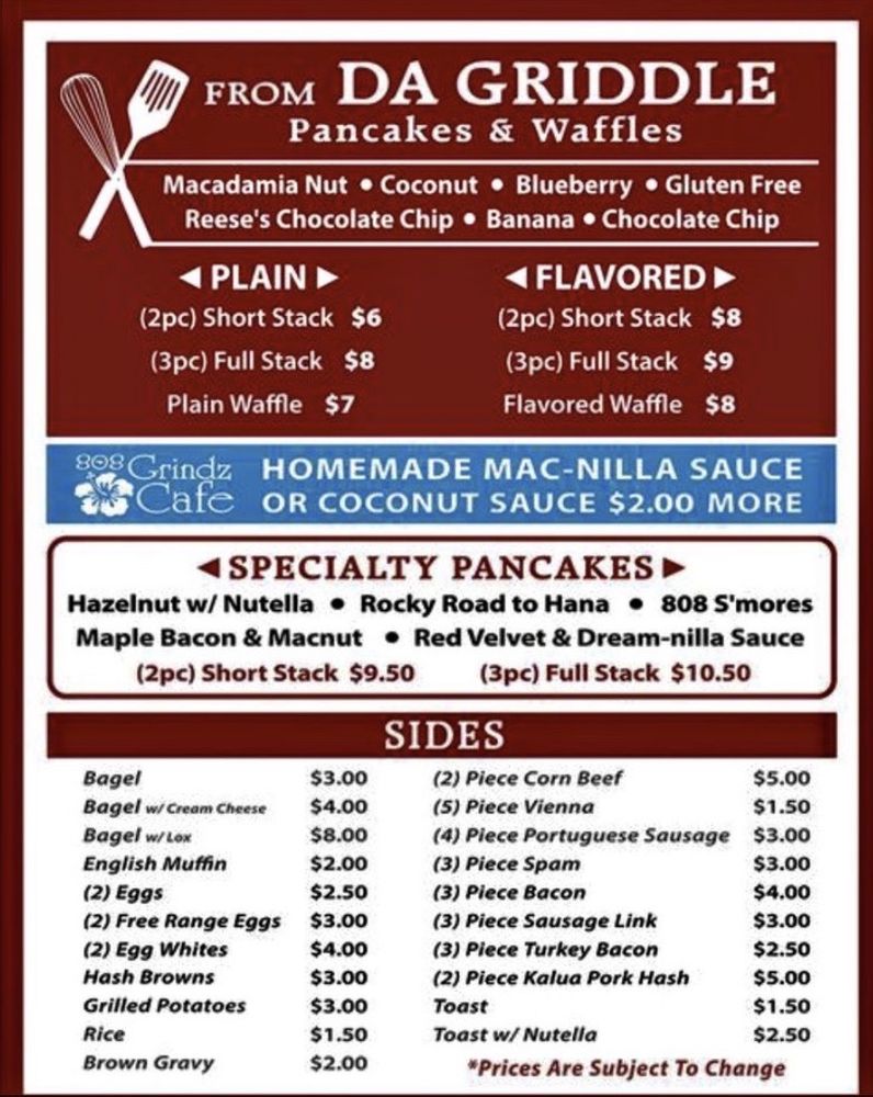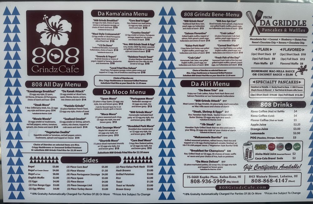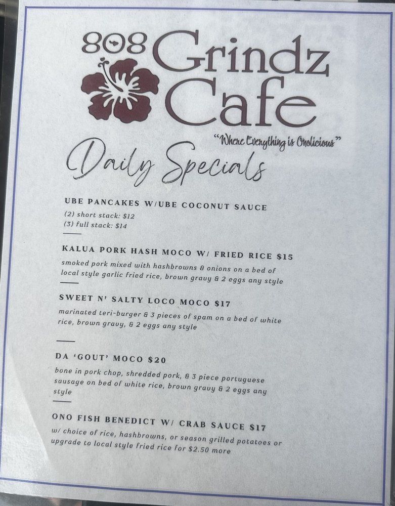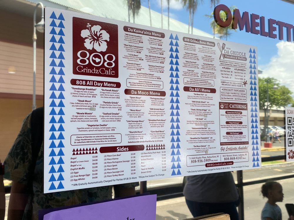 808 Grindz Cafe is a women-owned gem in Maui, offering a cozy and inviting space for breakfast and brunch lovers. With limited seating indoors, it's recommended to call ahead for takeout to avoid long wait times. The menu boasts delicious dishes like Ube Pancakes with coconut ube sauce, Mac Nut Pancakes with Macnilla sauce, Makawowie Burrito, and Short Rib moco. Customers rave about the flavorful pancakes, attentive service, and casual ambiance. The café also offers alcohol, gender-neutral restrooms, outdoor seating, and accommodates families with kids. For a taste of local flavors and a welcoming atmosphere, 808 Grindz Cafe is a top choice for a satisfying meal in Lahaina, HI.